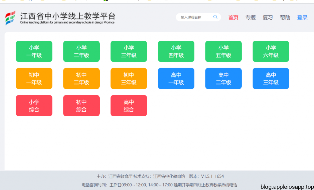 江西省教育厅开展的在线教学的支撑平台,内容全面,涵盖小学到高中各科,视频每节课长20-30分钟。