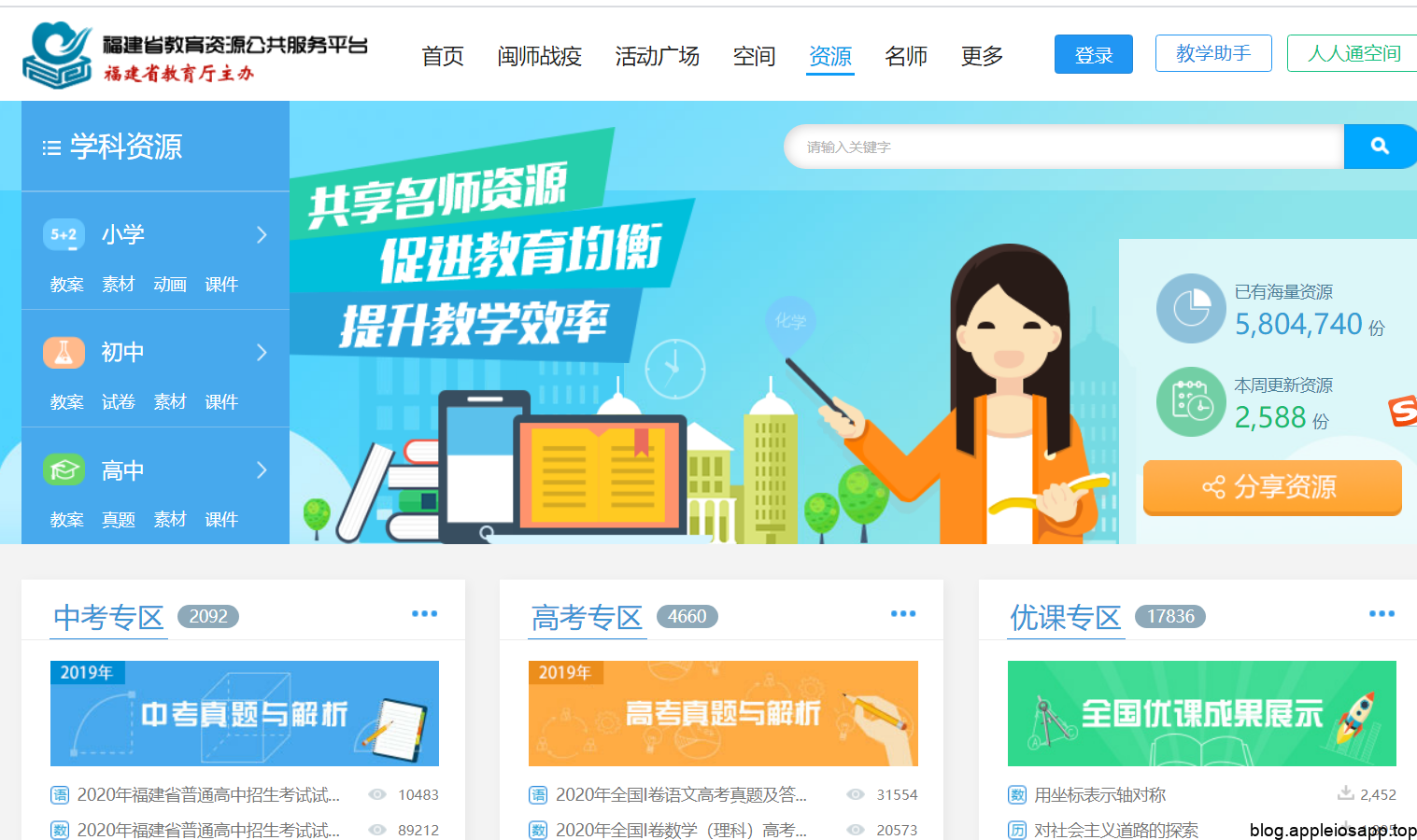 福建省教育厅主办的免费福建省教育瓷源公共服务平台:http://res.fjedu.cn